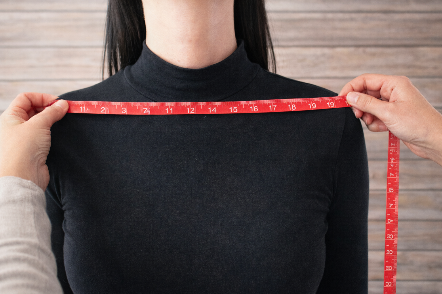 Measure across the broadest part of your shoulders. This usually lands out roughly 1 to 2 inches (2.5 to 5 cm) below the neckline.